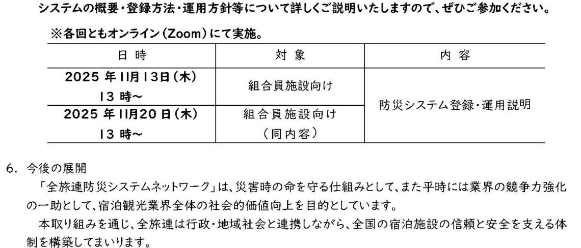 本取り組みを通じ、全旅連は行政・地域社会と連携しながら、全国の宿泊施設の信頼と安全を支える体制を構築してまいります。